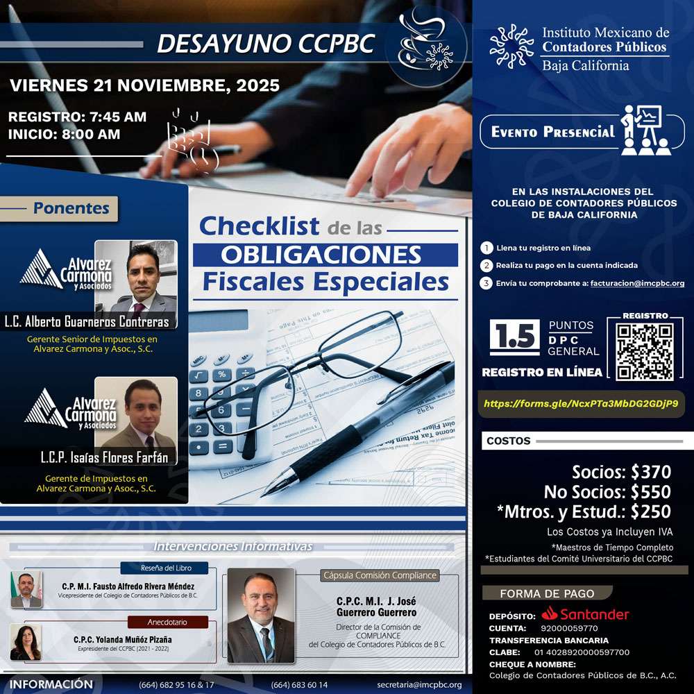 DESAYUNO – Check List de las Obligaciones Fiscales Especiales